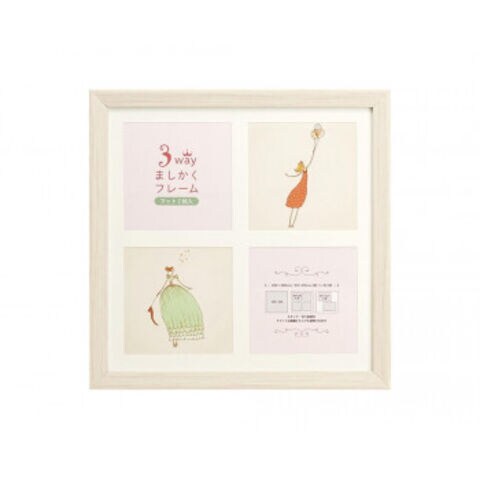 | 2枚の付属マットで飾り方3通り。正方形がかわいいフォトフレームです。 ※マットは正方形なので、回転させれば縦向き横向きどちらでも使えます。 |