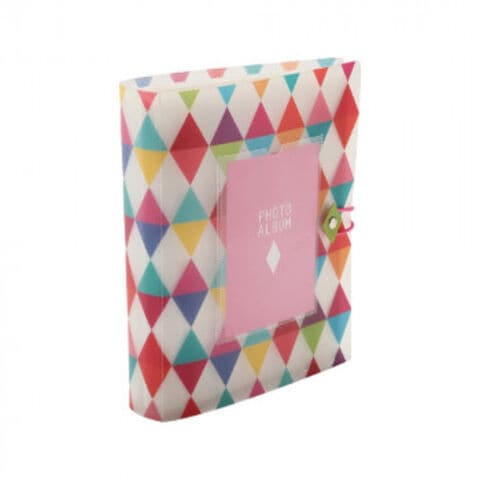 ゴムバンド付きでしっかりまとまる、カラフルなフォトアルバムです。