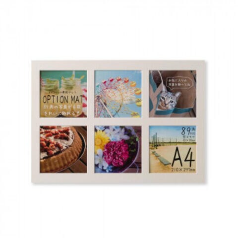 | 紙製のOA額です。フレームとマットを自由に組み合わせてください。89角の写真が6枚、きれいに飾れます。 |