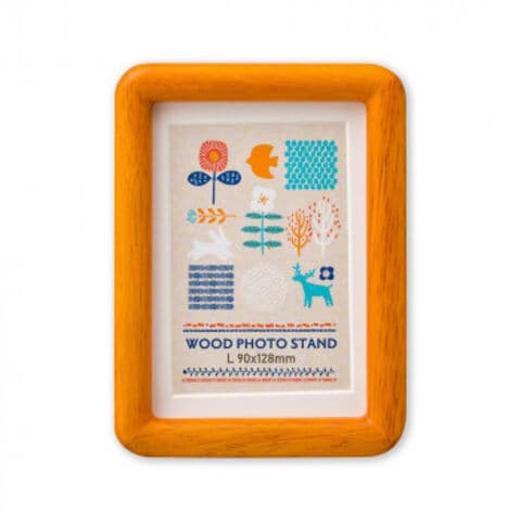 | チーク色の角丸写真立て。吊カンを鋲などでさして壁に掛けて飾ったり、スタンド付きなので立てて飾ることもできます。 |