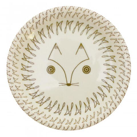 器に盛り付けられたお料理を食べ進めていくと、隠れていた動物の顔が現れます。滑らかな釉薬をまとったキツネがお皿の底からまんまる目でジッとこちらを見ています。直径16.5cmの磁器製プレートです。表面はつるっとした質感です。取り皿としてちょうど良いサイズです。フルーツなどデザートを食べる時にも活躍します。お料理で顔を隠しても様々な表情を見せくれる器です。
