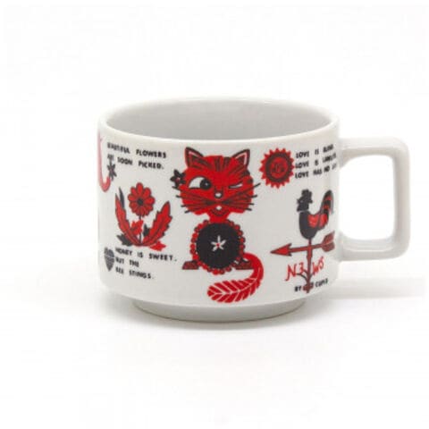 | 1960年代から1970年代にかけて製造販売されていたコーヒーマグの復刻シリーズです。コーヒー用として小ぶりだったサイズは当時のものより少し大きく変更され、いろいろな飲み物がたっぷり飲めるようになりました。ユーモアあふれる絵柄は当時のまま再現されています。積み重ねできる形なので、使わない時もすっきりします。 この形、今は「スタッキング形状」ということが多いのですが、販売当時は「コミカル・マグタワー」と呼んでいたようです。 ※オーブン・直火でのご使用はできません。 |