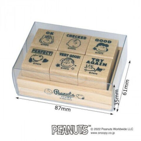 人気のスタンプセットがコンパクトになり勉強や手帳にも便利な6個セットです。ピーナッツの仲間達で英語の勉強も楽しくなる評価印セットです。