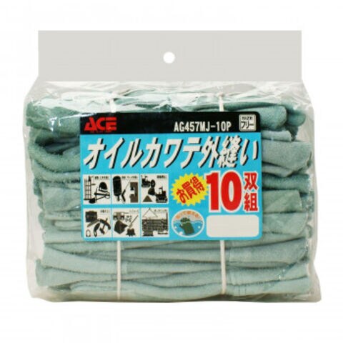 小野商事 エース 牛床革手袋 オイル加工 外縫い 10双組 AG457MJ-10P