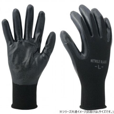 軽くて丈夫なニトリルコーティング手袋です。汚れが目立ちにくいブラックで機械整備にも最適です。