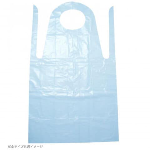 | 介護などで使用するポリエチレン素材の1回使い切りのエプロンです。袖なしタイプなので、脱着が簡単です。首部の切れ込みで引っ張って簡単に脱げます。衣服に張り付きにくいエンボス加工を施しています。男女兼用のフリーサイズです。 |