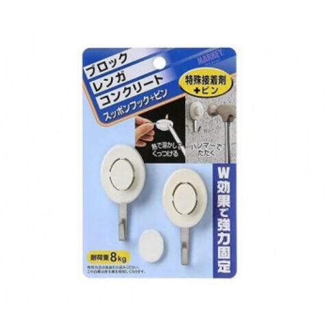| ピンフックの裏面にホットメルトタイプのボンドを使用し、驚きの耐荷重を実現した商品です。裏面ボンドを熱で溶かしていただき、その状態でピンを打ち付けてご使用ください。 取り付けられない場所:タイル・土塀・しっくい・凸凹のある化粧ブロッククロス・壁紙などが貼ってあるコンクリート壁 |