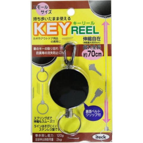 | 伸縮自在のキーリールです。 ※「伸長最大55cm」と「最大全長は70cm」二種類ありますが、同じ意味です。 |