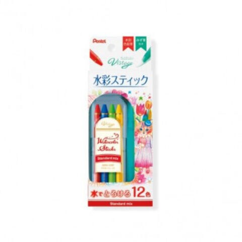 ぺんてる 水彩スティック12色スタンダードミックス GSS1-12ST 1個入