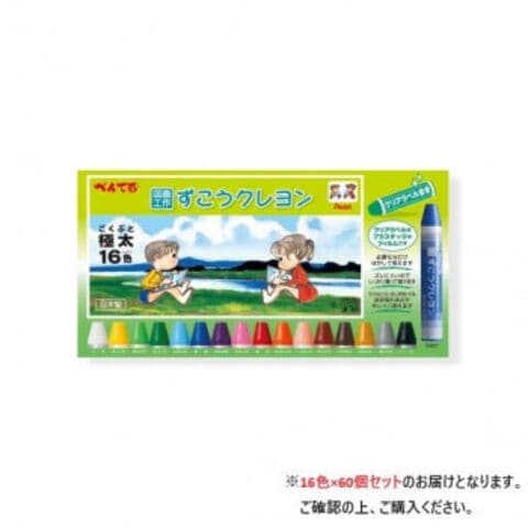 ぺんてる ずこうクレヨン クリアラベル 16色 PTCGP1-16 60個入