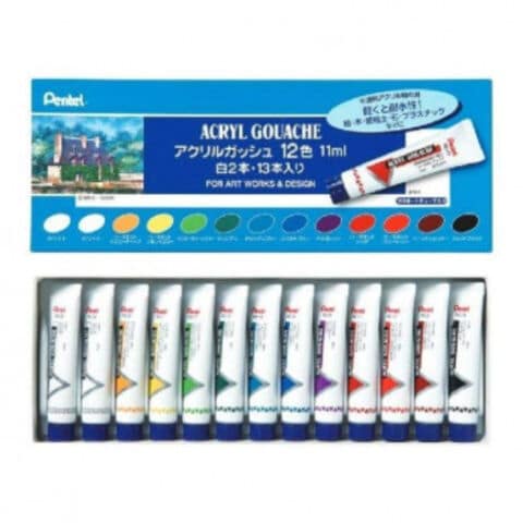 ぺんてる アクリルガッシュ 12色セット 白2本入 WXR-12 1個入
