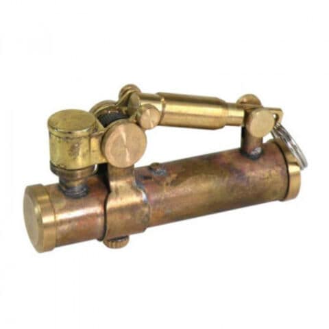 | 1999年に誕生したデュークオイルライター。今も愛されるその洗練されたデザイン。蓋には「DUKE」の刻印入り。着火方法はサスペンション式。 |