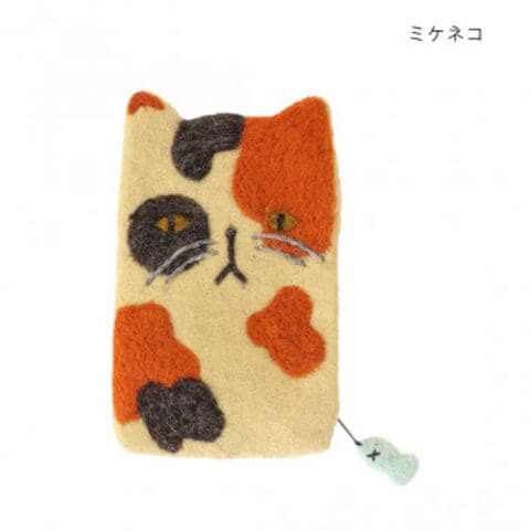 | おすまし顔の猫のフェルトポーチ。ジッパーチャームには、ごはんのお魚が付いています。メイク道具やアクセサリー、小物を入れるのに丁度いいサイズで、日常使いにもぴったりなアイテムです♪1つ1つ手作業で作られるフェルトアイテム。ヒツジの毛を広げて石鹸水などを含ませて、もんだり巻いたり転がしたりすることで作られます。 ※手作りのため、色合いやサイズに個体差があります。ハンドメイドならではの風合いをお楽しみください。 |