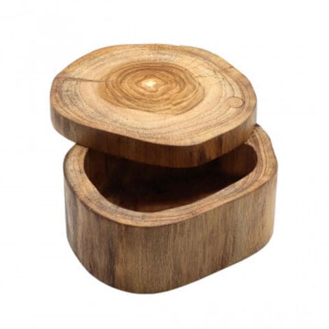 | チークをくりぬきスライド式のフタを付けたボックス。蓋を閉じると小ぶりな切り株のようになり、可愛いくディスプレイができます。 ※天然素材そのものの形を活かして作られているため、個体差があります。あらかじめご了承ください。 |