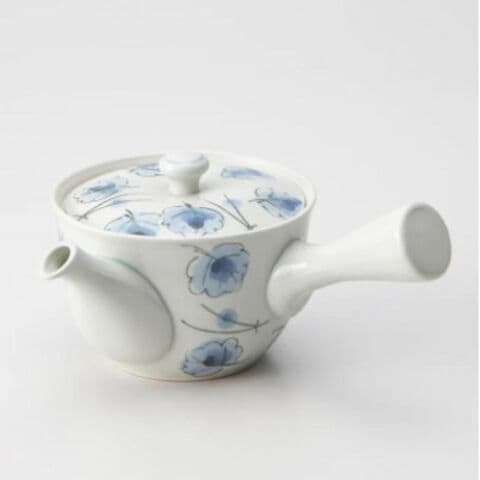 | ハンドメイドで描かれた広口急須。手描きならではの素朴さは、どこか懐かしく、味わい豊か。 ※直火不可 |