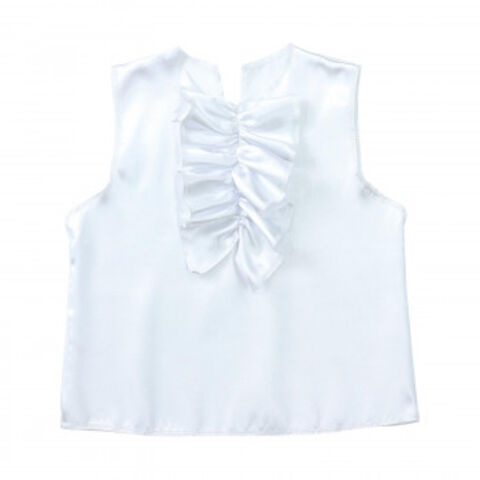 ひらひらの前フリルがついたかわいいソフトサテンシャツです。演技やダンスなどの衣装に。サテン生地で、肌触りが良く、光沢のある素材です。