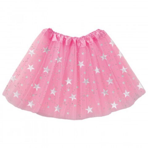 | シルバーの星がキラキラ輝く、ボリュームのあるスカートです。演技やダンスなどの衣装におすすめです。 ※裏地なしのため、透ける素材です。 |