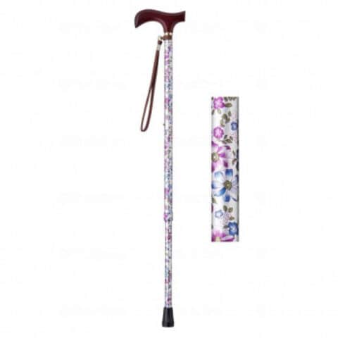 ウェルファン 夢ライフステッキ 柄杖伸縮型(スリムタイプ) 花シルバー 009714