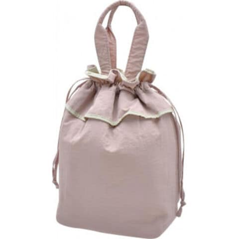 | さりげないフリルが大人可愛い、少し大きめのランチバッグです。サラッとした軽くて持ちやすい生地で仕上げました。底面の形がしっかりしているので、お弁当が安定します。内側はアルミコーティング生地で、保温・保冷を補助します。ハンドルを内側にしまえば、巾着としても使えます。 |