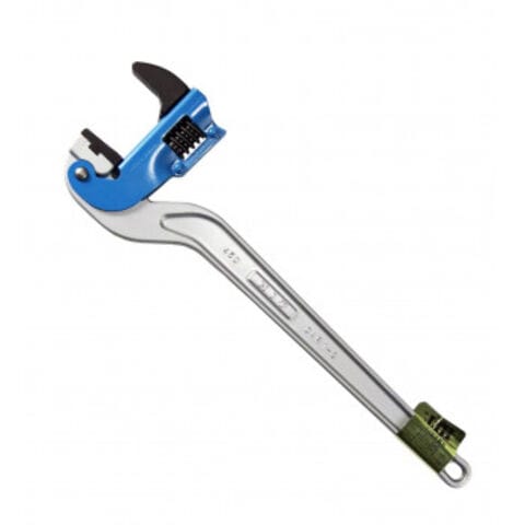 接地配管作業、壁ぎわの配管作業、溝中配管作業など従来のレンチでは使えない狭い所での作業に最適です。水道管、ガス管、VD管などの継手のねじ込み、取り外し。通常のパイプレンチと比べ、歯のピッチが細かく被覆管を傷付けにくい。白管(亜鉛メッキ鋼管)との兼用型です。