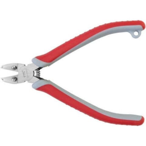 | パッド(飛散防止部)に樹脂素材を使用しているため、極細の線もしっかりキャッチできます。表刃が小さいので切断面がフラットに仕上がります。ストラップ取付穴付きで安心して作業可能です。 |