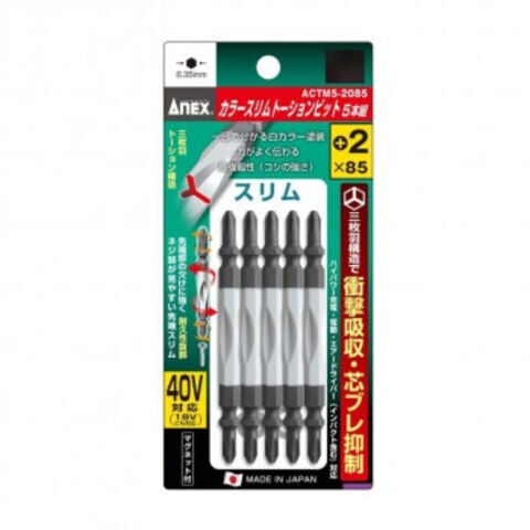 | 三枚羽構造で衝撃を吸収。ネジ頭が見やすい先細タイプ。三枚羽構造で芯ブレしにくく安定したビス打ちが可能。 |