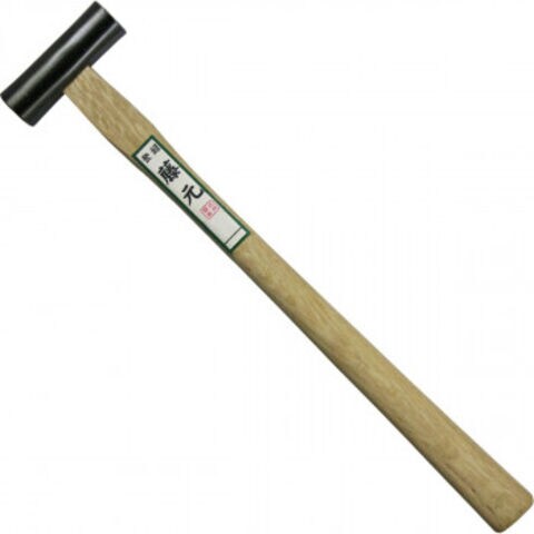 | 職人向けですが、一般の方にもお使い頂けます。両口玄翁。打撃面の焼き入れは、中央部を硬く、フチは欠け防止のためやや甘めに仕上げてあります。木柄には、昔から丈夫で使われ続けている本樫材を使用し、玄能の種類によって長さや形状を選んで仕込んでおります。本品は手触りの良さを重視しニスを塗らず、長さも余裕の尺1柄(約330mm)を仕込んでおります。 ※木柄は、傷んだら交換が可能です。 |