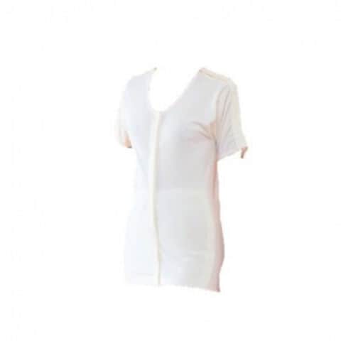 | 婦人用5分袖。介護用肌着、また骨折、打身の治療中の方や診察、点滴、透析時などにも便利。ボタンをかける手間を全面解消した、丸型マジック式ボタン肌着。ラグラン袖仕様です。品質の基本は素材にこだわること。高級エジプト綿60単糸を使った両面編立生地の使用によって、吸汗性、保湿性、肌ざわりのよさを実現させました。肌にやさしい無蛍光生地を使用(蛍光剤は一切使用していません)。 |
