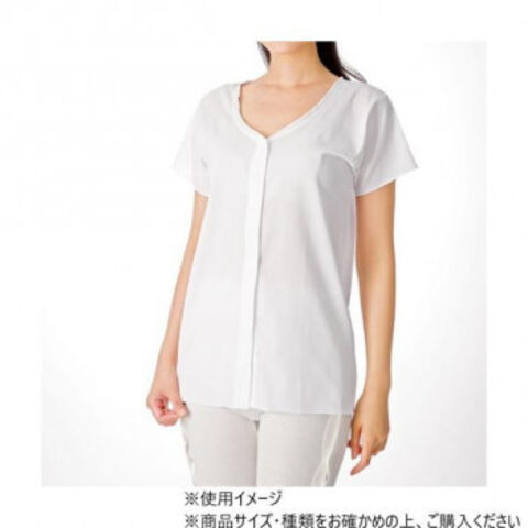 神戸生絲 婦人クレープ前開き半袖 L CH3 ホワイト