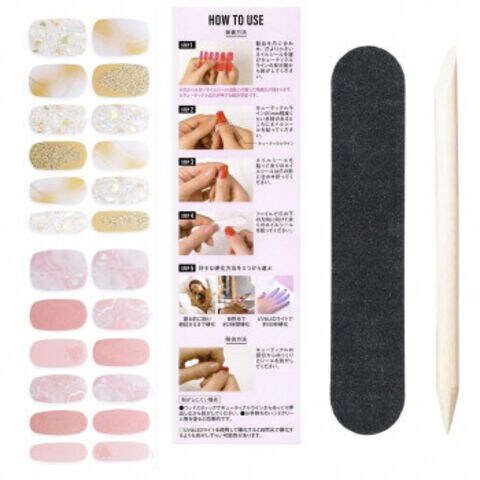 | セット内容 | ネイルシール24枚/ミニネイルファイル1個/ウッドスティック1本/取扱説明書 |