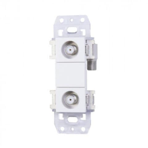 | 3.2GHz対応の2端子型テレビ端子です。テレビ端子台のブランクパネルを着脱することで、市販の化粧プレートの2個用、3個用に対応可能になっております。取付パーツは着脱可能で、ケースへの挿入位置を変えることで、市販プレートの高さに合わせることが可能です。取付パーツを外せば市販の取付枠に取付可能です。 |