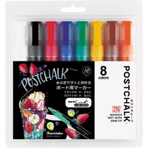 呉竹 ZIG POSTCHALK MARKER WET-WIPE 6MM TIP BASIC・8V POST-500A/8VA