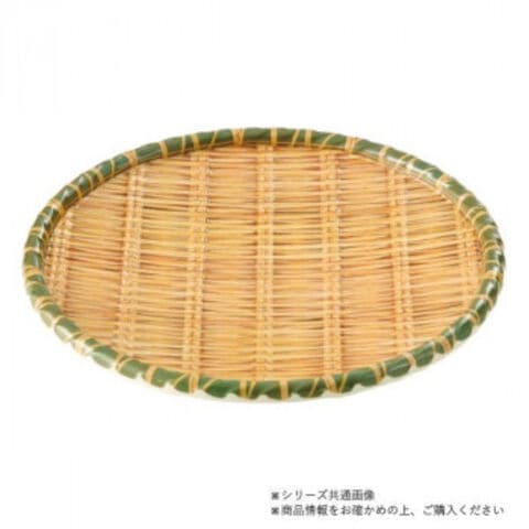 | 竹の風合いをメラミンで表現しました。メラミンの型に竹柄をプリントし、節や編み目の部分は凹凸を施し立体感があります。天然竹の趣をリアルに再現しつつ、使い勝手を向上したプレートです。メラミン素材は従来の竹製品と比べ水をはじくため、濡れても安心、汚れてもさっと洗えるので衛生的です。カビや退色もなく、いつまでも美しく華やか。生鮮食品ディスプレイなど、幅広く活用できます。 |