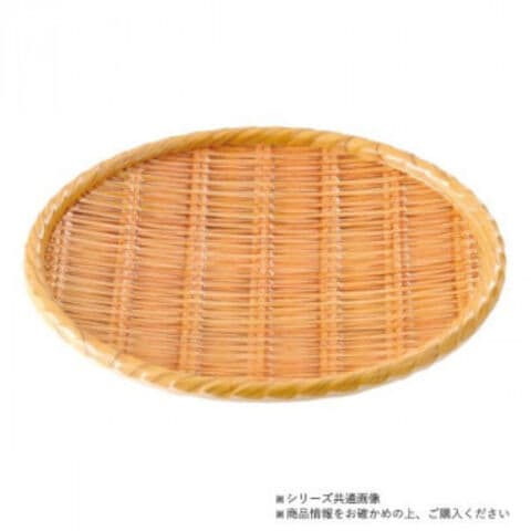 竹の風合いをメラミンで表現しました。メラミンの型に竹柄をプリントし、節や編み目の部分は凹凸を施し立体感があります。天然竹の趣をリアルに再現しつつ、使い勝手を向上したプレートです。メラミン素材は従来の竹製品と比べ水をはじくため、濡れても安心、汚れてもさっと洗えるので衛生的です。カビや退色もなく、いつまでも美しく華やか。生鮮食品ディスプレイなど、幅広く活用できます。