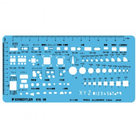 | 品質の良いプラスチックを精密加工し、耐久性もある室内レイアウト定規(小)です。透明度が高いため図面も識別しやすく、また、ブルーの本体色は目にもやさしいです。ペンなどを使用する際、にじみによる汚れを防止するインクエッジ付きです。1/200サイズです。 |