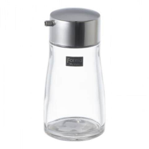 | 透明ガラス製で中身が見えるので、使った量が一目で分かります。液だれ、にじみ漏れを防ぐノズルとパッキン付きで安心です。 |