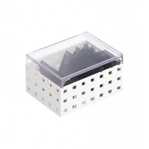 | 名刺やショップカードの収納にピッタリなサイズです。仕切りは取り外し、自由な位置にセット可能です。見出し板に直接書き込むことでカテゴリー分けもできます。フタを裏返して本体を置けば、斜めに傾き取り出しも可能で便利です。引き出しの中を整理するのに便利です。 |