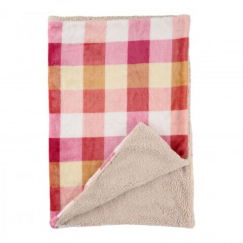 フレンズヒル ボア付ブランケット ノーブルチェック ピンク YW-107-39