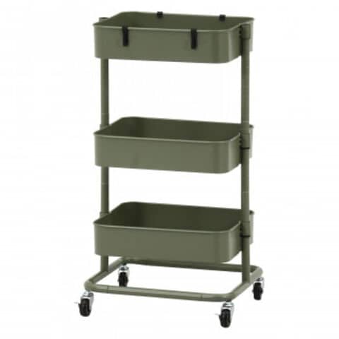 不二貿易 C/D:45069 高さが調整できるワゴン マルシェ モスグリーン MH-0302-3MGR
