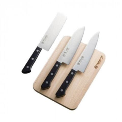 | サイズ | 三徳包丁:刃渡17cm、菜切包丁:刃渡16.5cm、牛刀包丁:刃渡18cm、桐まな板:18×25×1.5cm 個装サイズ:33.4×18.8×4.8cm |