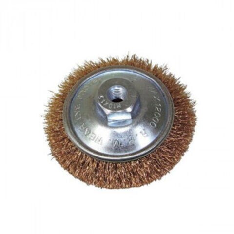 | 仕様 | 外径:85mm ねじ径:M10mm 金具径:60mm 線材:鋼線メッキ 線径:0.2mm 毛丈:12mm 最高使用回転数(min-1):12000 |