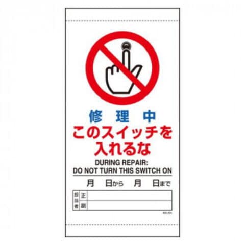 | スイッチ類に被せて、効果的な注意喚起に役立つ点検標識です。 |