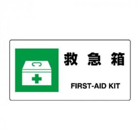 | 緊急時、すぐに救急用品を見つけるのに役立つ標識です。 |