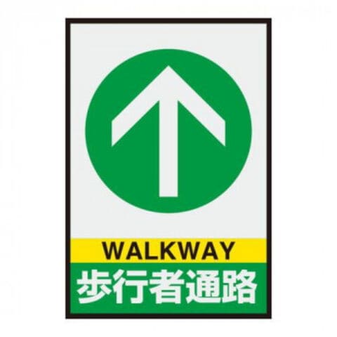 | 歩行者通路を明示する標識です。施工不要。置くだけで簡単に設置できます。 ※素材の特性上、1%程度の伸び縮みを生じる場合があります。 |