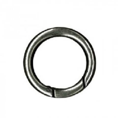 | 開閉タイプの丸カンです。テープを通して、持ち手やショルダーとしてハトメにも取り付けることができます。 |