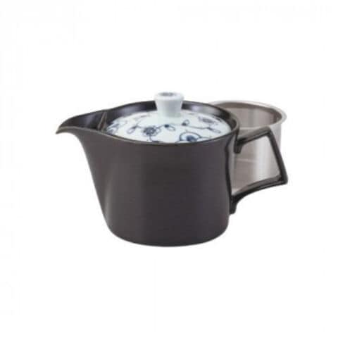 シンプルなデザインのポット。蓋には可愛らしい絵付けが施されています。