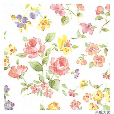 | ピンクや黄色の花が散りばめられたロマンティックな雰囲気の包装紙です。 ※三つ折りの状態でポリ袋入れの商品になります。あらかじめご了承ください。 |