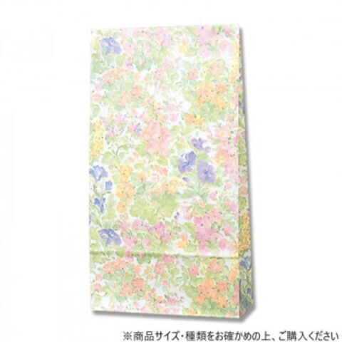 | 全面にカラフルな花柄を配しました。高級感のあるマチの小さい角底袋です。 |