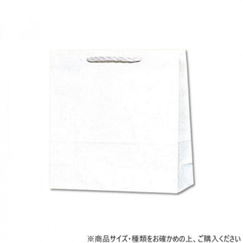 | 袋本体の穴に通した手紐を結んで取り付けたタイプの手提げ紙袋です。口を内側に折り返し、ボール紙を挟んで強度を持たせています。正面の見た目がほぼ正方形のオールマイティモデル。汎用性の高い白無地。 |