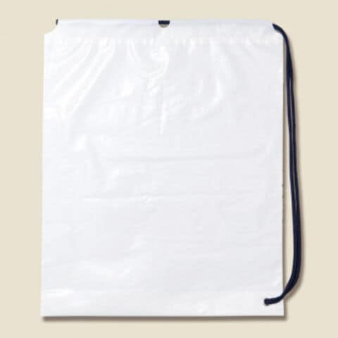 | 肩にかけられるタイプの巾着型袋です。中が見えにくい乳白色です。 |